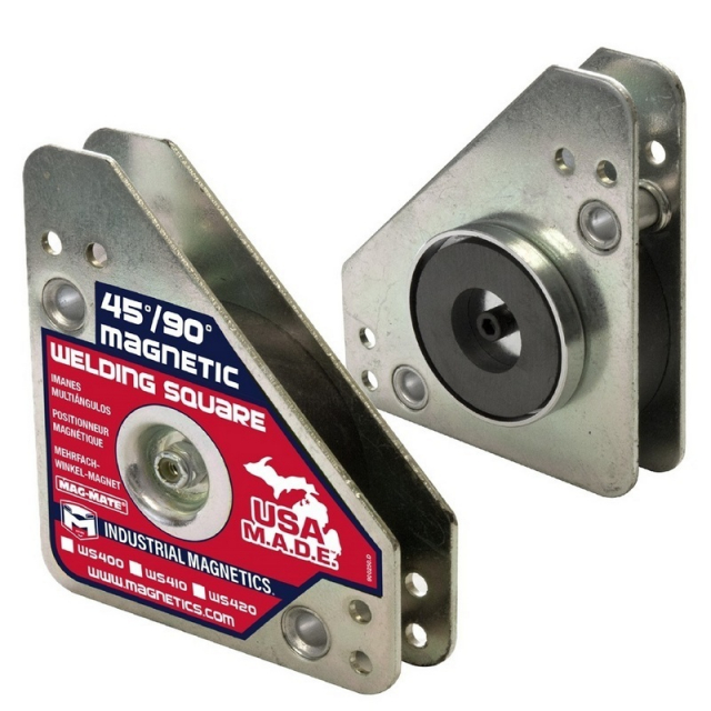 Mag-Mate standard Magnetic Welding Square is made in the USA! Ideal for welders that need fast set-up and accurate holding of sheet stock or tubing. Ferrous stock can be securely held at angles of 30°, 45°, 60°, 75°, 90° and 180°. Mounting holes are provided for fixturing squares into jigs.