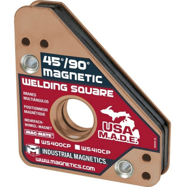 Mag-Mate standard Magnetic Welding Square is made in the USA! Ideal for welders that need fast set-up and accurate holding of sheet stock or tubing. Ferrous stock can be securely held at angles of 30°, 45°, 60°, 75°, 90° and 180°. Mounting holes are provided for fixturing squares into jigs.