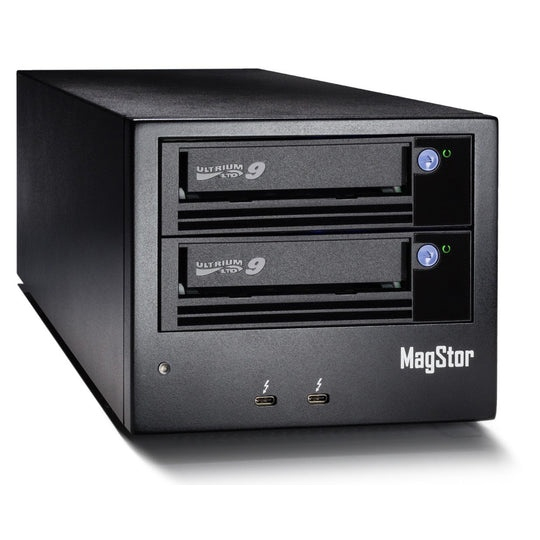 The MagStor TRB3-HL9 Dual features two LTO9 (HH) Half Height tape drives connected via a Thunderbolt™ 3 / USB-C port as a convenient connection to your desktop MAC or PC computer.