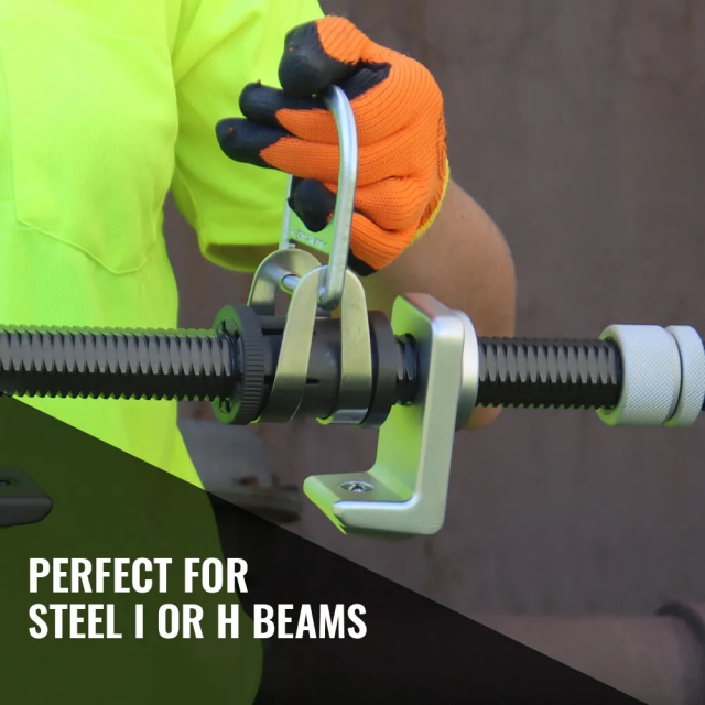 The Malta Dynamics structural steel beam clamps are constructed with lightweight aircraft aluminum bars and feature a centered 360° swivel D-Ring connection point to help eliminate lifeline tangling and provide workers with the ability to move around hassle free.