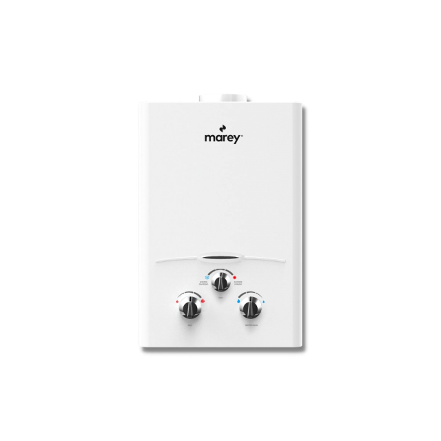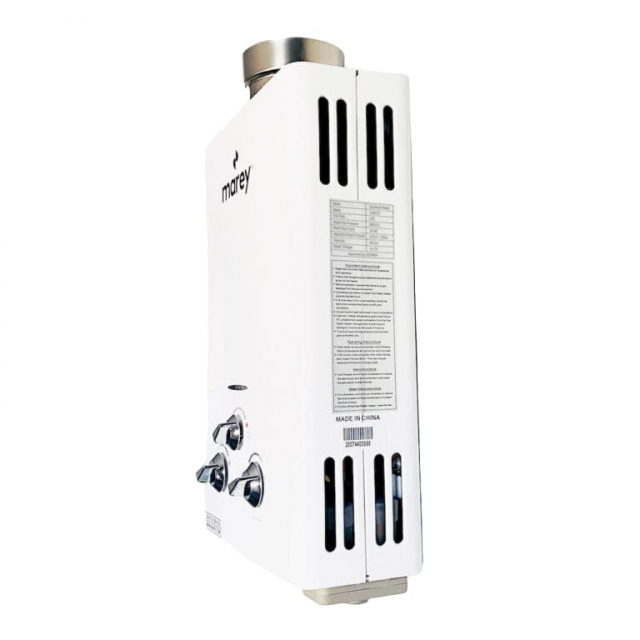 Compact design saves space and is easy to install almost anywhere, Provide endless hot water on demand and only as needed. Marey's unit has a maximum input rating of 68,240 BTU/h and will provide a flow rate of up to 2.64 GPM output. No electrical connection is required; perfect for off-grid applications. Its small to medium water production is ideal for indoor usage, apartment, cabins, and tiny homes. You are able to control your temperature all year round with a convenient summer/ winter switch. Adjustable manual temperature control, multiple safety sensors including overhead and anti-dry heating. It is not recommended for elevations above 2,000 feet.