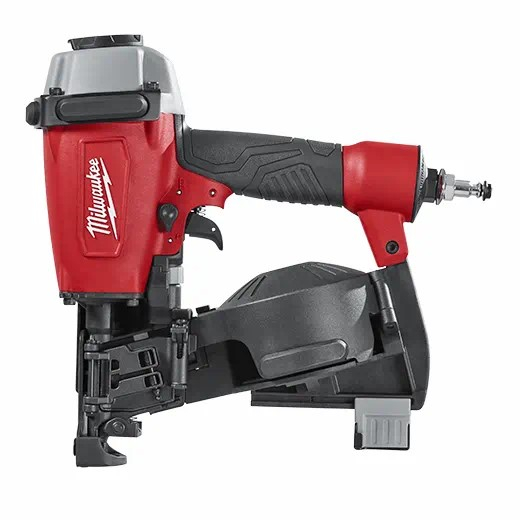 The Milwaukee 1-3/4" Coil Roofing Nailer features an ultra-lightweight magnesium housing to minimize fatigue. Its compact size offers greater maneuverability. The magazine holds 120 galvanized wire collated nails from 3/4" to 1-3/4" length and .120" diameter. A magnet holds the nail in place making loading fast and efficient. The thick rubber guards minimize housing damage. The tool-free depth of drive protects from overdriving nails. The self-cleaning air filter extends life by preventing dirt and debris from entering the tool. The adjustable air deflector with muffler directs exhaust away from the work area and holds down the noise. The textured selectable trigger lets you move from sequential or contact actuation by simply turning a knob. A removable shingle guide assists in quick shingle alignment.