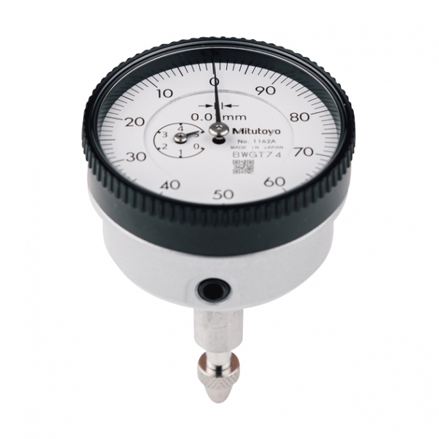 Mitutoyo, 1162A, Back Plunger Dial Indicator, 0-5mm Range, 0.01 Graduation, 100-0 Dial Reading, 0.4-1.4N Measuring Force
