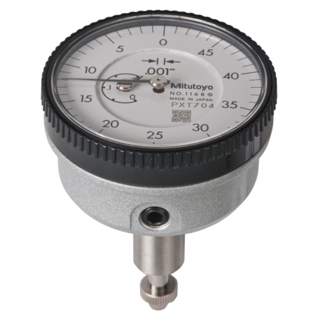The Mitutoyo back plunger dial indicator is designed with the measuring spindles on the back of the indicator. This type of indicator offers the same precision and durability as other Mitutoyo dial indicators, but is ideal for use in small spaces where graduations of standard dial indicators are difficult to see. The back plunger style makes this type of indicator suitable for mounting on leveling machine tool tables or inspection jigs. The crystal has a scratch and glare-resistant coating for clearer readings and better durability. The outer clamp and optional lifting lever can be attached to either side and can be easily installed or removed without the use of tools.