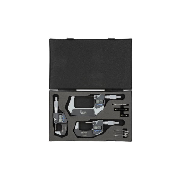 The Mitutoyo IP65 rated coolant-proof micrometer's ratchet stop thimble mechanism provides a constant measuring force on the spindle to ensure accurate, repeatable measurements. The combination of the ratchet thimble and speeder enables a rapid spindle feed when measuring widely different dimensions, as well as, easier one-handed measurements.