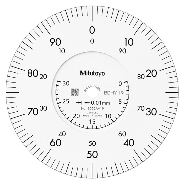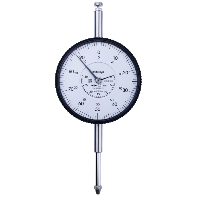 The Mitutoyo large dial face dial indicator combines excellent accuracy and reliability with a large, easy-to-read dial face. The stem design provides a long clamping range for use in many different applications. The spindle and stem are hardened, high-strength steel, and the jeweled bearing provides wear resistance and low friction movements for smooth, precise operations. The absence of a through screw hole helps protect the indicator against water and oil permeation. The crystal has a scratch and glare-resistant coating for clearer readings and better durability.