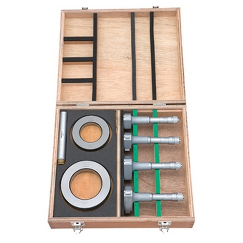 The Mitutoyo mechanical Holtest internal micrometer set includes complete gages (micrometer head units and measuring heads) for each size. Three alloy steel anvils evenly spaced at 120° for true alignment of the axis bore for accurate, easily repeatable measurements. Hardened steel spindles with a carbide ball and cones with a carbide pin ensure accuracy and durability when extending and retracting the anvils. The holtests ratchet stop mechanism provides a constant measuring force on the hardened steel spindle to ensure accurate, even measurements.