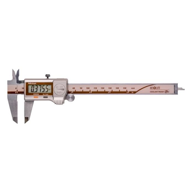 The Mitutoyo ABSOLUTE coolant proof caliper delivers accurate, repeatable outside dimension, inside dimension, depth and step measurements with accuracy and unrestricted speed in an ergonomic design. The caliper's slide and jaws are constructed of hardened stainless steel and provide an impact-resistant, easy-to-ready LCD display for durable, reliable use. The ABSOLUTE caliper can be used in workshop conditions exposed to coolant, water, dust and oil.