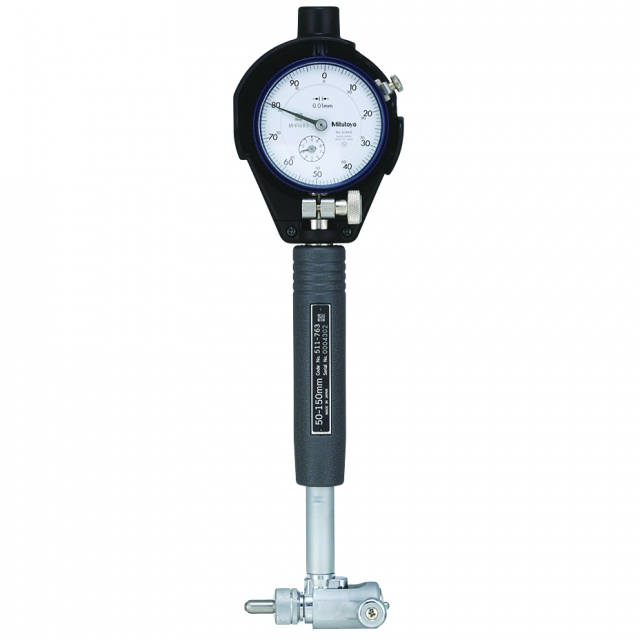 The Mitutoyo short-leg bore Gauge is ideal for measuring the inside dimensions of shallow bores and holes. Due to its short-leg design, this bore Gauge is more compact, lighter, and easier to use than bigger bore Gauges while maintaining excellent accuracy. A two-point contact system detects geometry anomalies such as ovalness and taper.