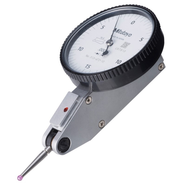 The Mitutoyo horizontal type dial test indicator with reversible measuring direction and adjustable contact point is ideal for measuring surface variations in narrow or recessed areas with high precision. The dial test indicator's one-piece movement provides high-impact resistance and better durability, while jeweled bearings deliver high sensitivity and quick response. The horizontal face is parallel to the axis of the indicator, and the indicator can be mounted either horizontally or vertically from the front, top or back of the indicator.