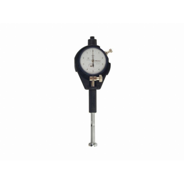 The Mitutoyo extra small hole bore gage features a split-ball design with stainless steel contact points to measure a hole's inside diameter and identify out-of-roundness issues with an accuracy to +/-4µ/.00016"