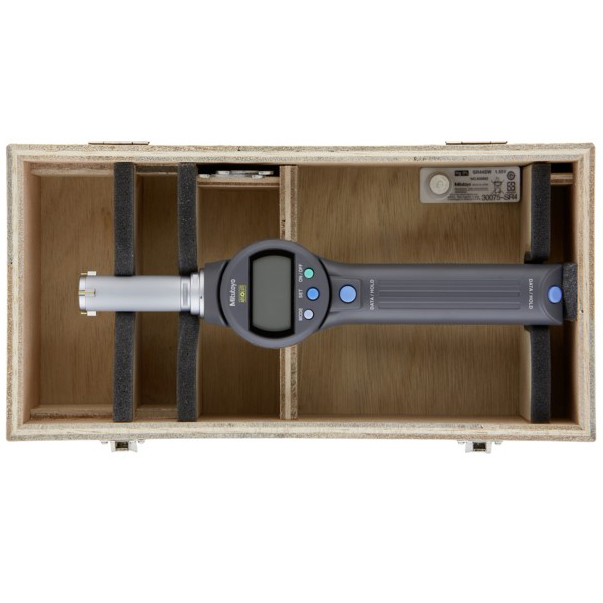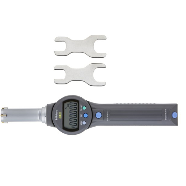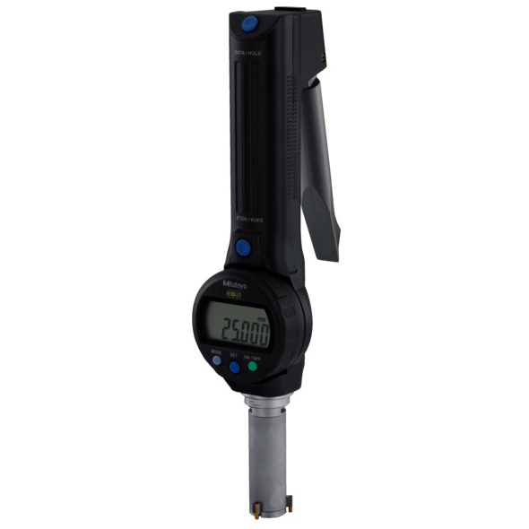 The Mitutoyo Borematic ABS Digimatic snap-open bore gage offers accurate bore measurements quicker and easier than ever before. Measurements are displayed on a large LCD readout that rotates 330° for easy reading in any instrument orientation. The Mitutoyo Borematic snap-on bore gage features an activation handle with a precision-balanced spring that smoothly retracts the anvils when pressed. Titanium Nitride (TiN) coated measuring contact points provide excellent durability and impact resistance which allows the instrument to measure to the bottom of a blind hole. With the Absolute encoder, once the origin point is set with the ORIGIN button, the Borematic retains the setting for the entire battery life. Repeated origin setting (presetting) is no longer necessary.