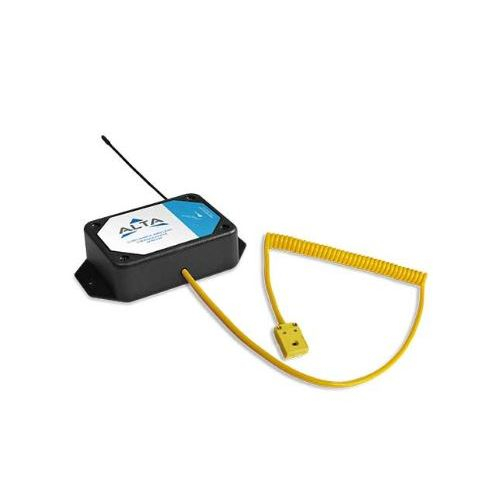 The ALTA Wireless Thermocouple Sensor is available with a hardwired thermocouple or K-type connector to support various thermocouple types and ranges. The hardwired thermocouple option measures temperatures up to 400°C (752°F). The K-type connector with Probe includes a needle probe that measures temperatures up to 400°C (752°F). The sensor is programmed to sleep for a user-given time interval (heartbeat) and then wakeup, send power to the thermocouple and wait for it to stabilize, and convert the analog data, mathematically compute the temperature and transmit the data to the gateway.
