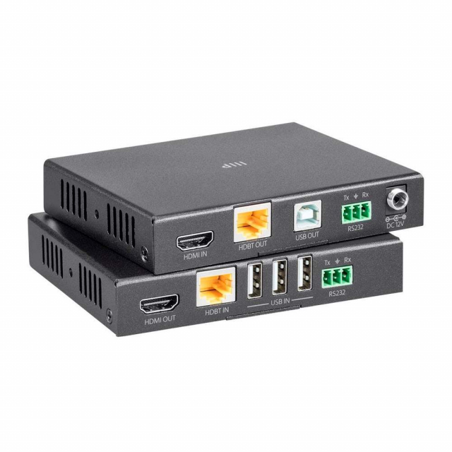 Monoprice's Blackbird™ 4K HDBaseT Extender uses the latest HDBaseT™ 2.0 technology to extend uncompressed HDMI® video, audio, USB 2.0 connectivity, control signals, and power over a single Cat5e/Cat6 cable. It transmits video at resolutions up to 4K up to 328 feet (100 meters). The Power over Cable (PoC) features allows the receiver to be installed in locations that lack AC power. Three USB 2.0 ports on the receiver allow you to connect a keyboard, mouse, and external drive.