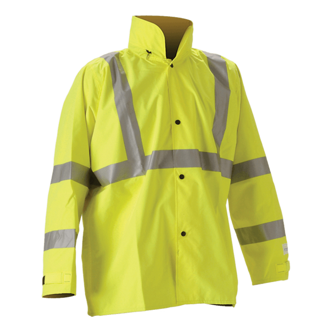 Envisage is waterproof, breathable, windproof and high visibility protective outerwear. Utilizing a waterproof, breathable film, Envisage ensures worker comfort by keeping the worker dry as well as reducing heat body stress during foul weather. During low light situations, the ANSI/ISEA 107 compliant background material and 3M Scotchlite keeps workers visible and safe.