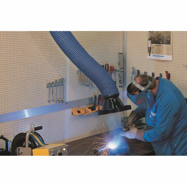 The Nederman Telescopic arm is specially designed for working environments with fumes, vapours or non explosive dust, where the space is limited. Typical workplaces can be welding schools or for production in small welding booths, or other industrial processes where a small, easily positioned arm is required. The reach of the arm is between 0.9 and 1.6m (3 and 5 ft).