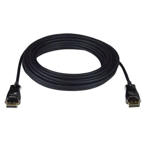 The Xtendex Low-Cost 8K DisplayPort Active Optical Cable locates an Ultra-HD 8K 4320p 60Hz DisplayPort monitor up to 50 meters from a video source. Using optical fiber, the DP8K-FO-xxM-MMLC provides high-reliability DisplayPort signal transmission with zero signal loss in high noise environments.