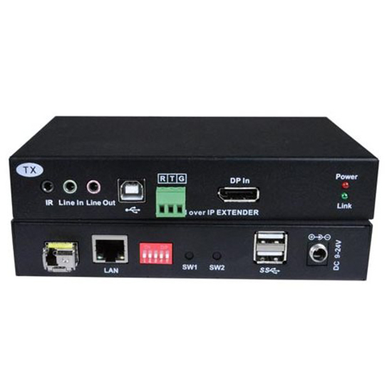 The XTENDEX® 4K 10.2Gbps DisplayPort USB KVM Extender via CAT6/7 or Fiber provides remote KVM (USB keyboard, USB mouse and 4Kx2K 30Hz UHD DP monitor) access to a USB computer up to 328 feet (100 m) away via CAT6/6a/7 cable, 6.21 miles (10 km) via simplex LC singlemode fiber optic cable, or 1,640 feet (500 m) via simplex LC multimode fiber optic cable. Each KVM extender consists of a local unit that connects to a computer, and a remote unit that connects to a DisplayPort monitor, bi-directional 3.5mm stereo audio speakers and microphone, RS232, and up to four USB devices (keyboard, mouse, flash drive, HDD, touchscreen display, etc).