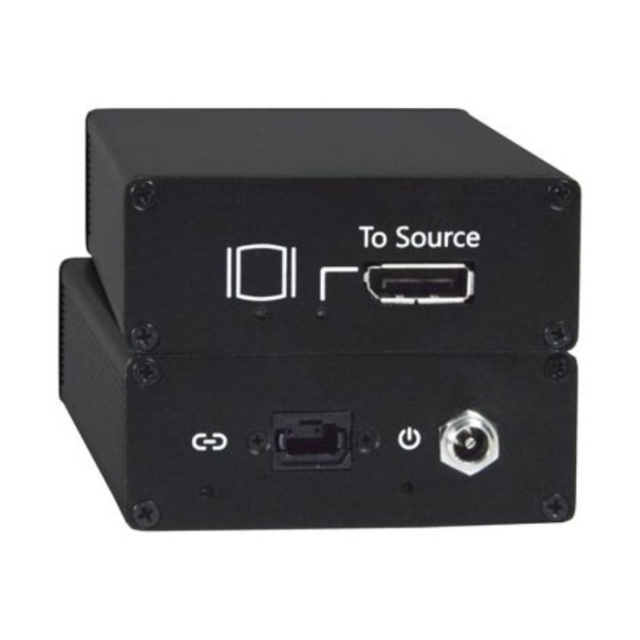 The XTENDEX® 8K DisplayPort 1.4 Extender via MPO Fiber Optic Cable locates an Ultra-HD 8K 4320p 30Hz DisplayPort display away from a DP computer up to 984 feet (300 meters) via a 12-strand female-to-female multimode OM3 type B MPO fiber optic cable. Each extender consists of a transmitter that connects to a DisplayPort source, and a receiver that connects to a DisplayPort display.