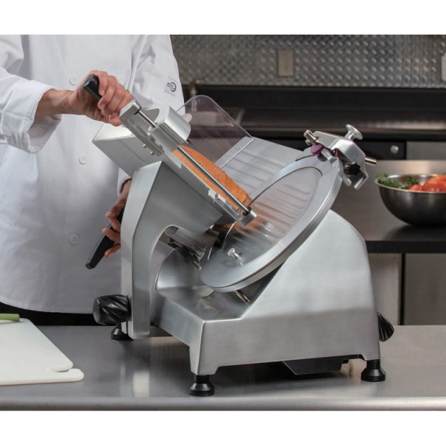 The Omcan 8" manual, belt-driven slicer features most compact designs and is ideal for small operations where space is limited. Excellent for slicing vegetables and processed meats. This unit is ideal for someone searching for a more economical solution that does not compromise on quality.