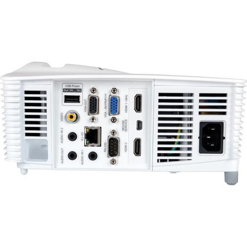 The X416 has VGA, composite, and two HDMI inputs to support a variety of devices. The HDMI inputs support MHL connectivity, allowing you to connect MHL-compatible devices such as smartphones or tablets. Its VGA output will let you daisy-chain the image to another projector or display, while the analog audio input and output will do the same for your audio. The projector has a built-in 10-Watt speaker to eliminate the need for a separate speaker system. It is controllable via Ethernet or RS-232 and includes an IR remote control and a VGA cable for out-of-the-box connectivity.