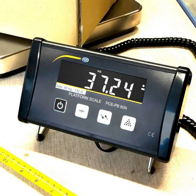 Another advantage of this platform scale is the wired display. The display is supplied with a stand, but it is also suitable for wall mounting. Other interesting functions of the platform scales are the piece counting function, PEAK hold function, function for level control, measuring units such as kg / lb / N (Newton) / g, adjustable background lighting, adjustable automatic switch-off and the option to operate the scales with power pack or batteries.