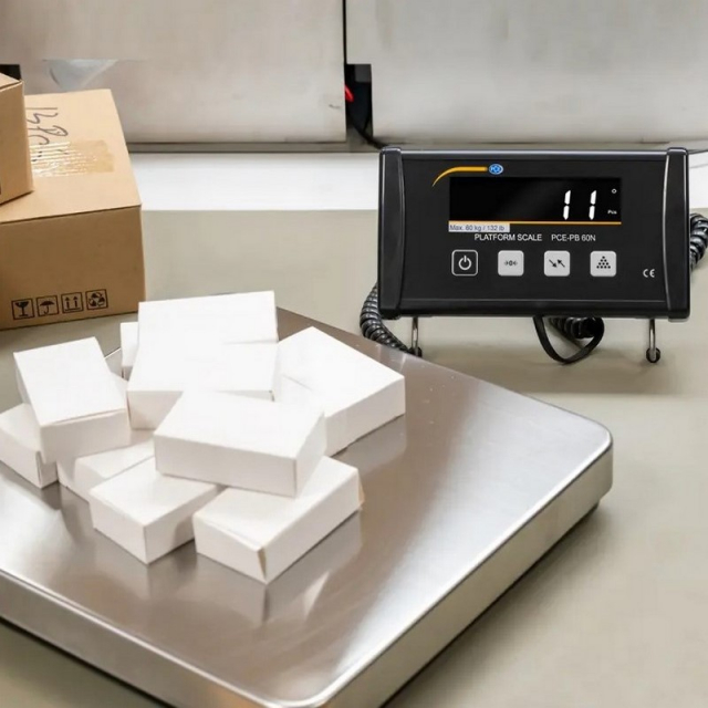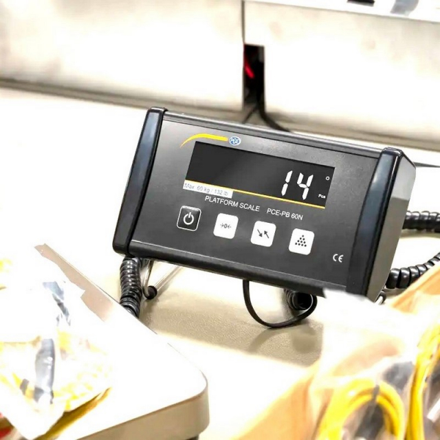 Counting scale PCE-PB 60N up to 60 kg, Bidirectional USB interface, PEAK hold function, Counting function, Mains and battery operation including USB interface cable.