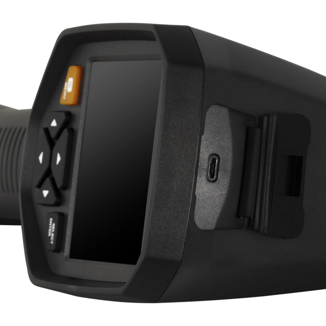 Thermal Imager offers reliable temperature measurement within a range from -20 °C to 550 °C (-4 °F to 1022 °F). The infrared images are displayed with a resolution of 384 x 288 pixels on the 3.5-inch color display. The compact and user-friendly design of the Thermal Imager features an ergonomic handle and an intuitive key control system directly below the screen for easy operation.
