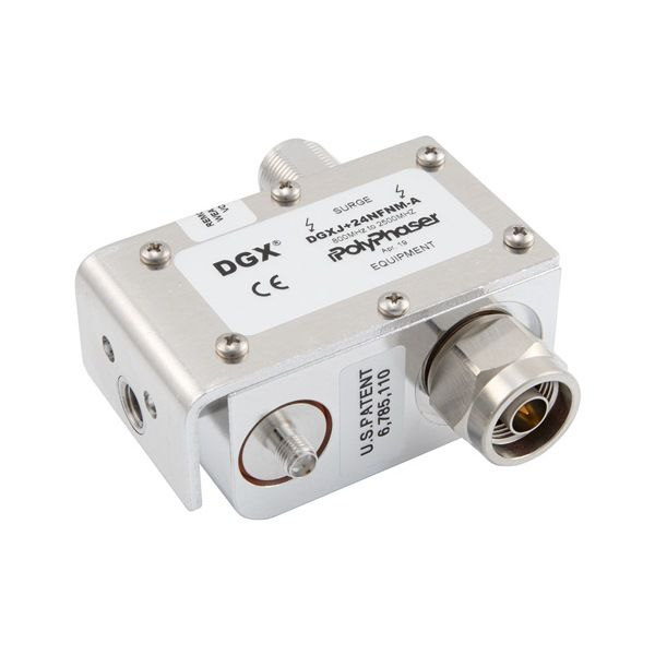 PolyPhaser coaxial RF surge protector (also known as lightning surge protector, lightning surge arrestor or suppressor). This radio frequency surge protector / lightning surge arrestor helps protect your equipment from electromagnetic pulse (EMP) or power surges that are commonly caused by lightning or other strong electrical changes. Radio frequency coaxial surge protector product is commonly used for radio and antenna installations where part or all system equipment is outdoors to protect sensitive equipment.