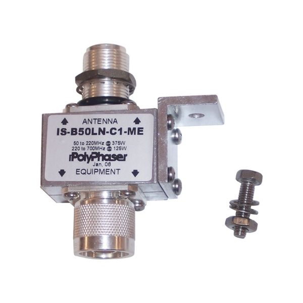 The IS-B50 Series of DC block surge arrestors are designed to protect against lightning events and are ideal for HF, UHF and VHF radios. The IS-B50 family of RF protectors can be used for general radio use with frequency ranges between 1.5 MHz to 1000 MHz.