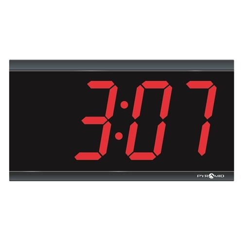 This ultra bright red LED digital clock is ideal for long hallways and large open spaces such as offices, warehouses, production facilities, schools or hospitals. Extra large 4" high characters and LED display is easy to read from distances up to 250'. Displays hour and minutes. Sleek, low profile design with non-glare lens and black frame. PM indicator light. Choose from 12 Hour (AM/PM) or 24 Hour (Military) time format. Automatically resets in the event of a power outage. Plug into any standard wall outlet. Includes wall bracket for safe and secure mounting. Proudly made in the USA.