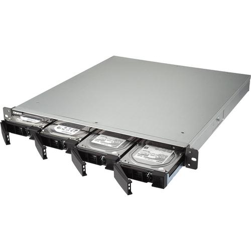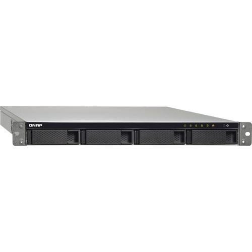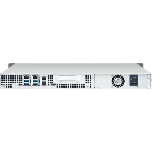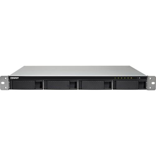 The TS-453BU 4-Bay NAS Enclosure from QNAP is a 1 RU rackmount NAS that fits in 19" racks, providing a storage solution in server rooms for small and medium businesses. It is equipped with a PCIe Gen 2.0 x2 slot that can accommodate a QNAP QM2 expansion card for adding an M.2 SSD cache/10GbE Ethernet card, a Wi-Fi card to create a wireless access point, or a 10 Gb/s USB 3.1 card for helping to simplify backups to/from multiple external sources. Also provided is 4K video playback and real-time transcoding, deployment of virtual environments through Virtualization Station and Container Station, centralized management of remote Windows, Linux, and IPMI-compatible devices with QRM+, and web automation services with IFTTT Agent. The TS-453BU is powered by a 1.5 GHz Intel Celeron J3455 Quad-Core processor, which will allow you to run multiple applications simultaneously and features a max boost speed of up to 2.3 GHz. The 4GB of DDR3L RAM has a configuration of 2 x 2GB and will allow quick access to frequently used files and programs. Network connectivity is achieved using the four Gigabit Ethernet ports which support failover, multi-IP settings, and port trunking/NIC teaming. There is also support for JBOD, single disk, and a variety of RAID modes, including RAID 0, 1, 5, 6, and 10, and 5/6/10+hot spare, each of which offers data redundancy, speed, or a combination of both. This 4-bay enclosure has the ability to natively house both 3.5" and 2.5" SATA III hard drives or SSD drives, and screws are included that accommodate each drive size. With all four Gigabit Ethernet ports in use, the TS-453BU can deliver sequential read speeds of up to 369 MB/s and sequential write speeds of up to 349 MB/s. When using all four Gigabit Ethernet ports with volume encryption, which helps to prevent sensitive business data from unauthorized access and breaches, read speeds top out at 336 MB/s and write speeds reach 301 MB/s. Using the four external USB 3.0 Type-A ports, this QNAP NAS can be connected to other devices, such as QNAP expansion units.