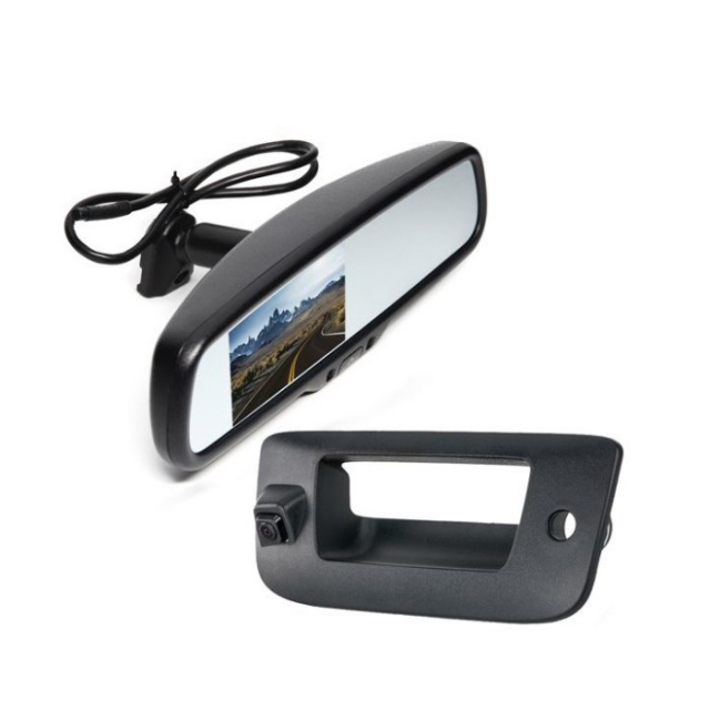 Commercial grade backup camera system specifically for GMC Sierra 3500HDs. Systems are designed for Sierras, GMC trucks, and other heavy duty pickups, but are completely customizable based on your specific wants and needs. Eliminate blind spots while increasing overall awareness, safety and visibility with the Backup Camera System For GMC Sierra 2500HDs. Each system will have these basic standards: a G-Series rear view replacement mirror monitor and tailgate handle backup camera with excellent night vision and an ultra wide 170° viewing angle. Use the side panel to configure your system. Build a back up camera system for your GMC Sierra 3500HD however you like!