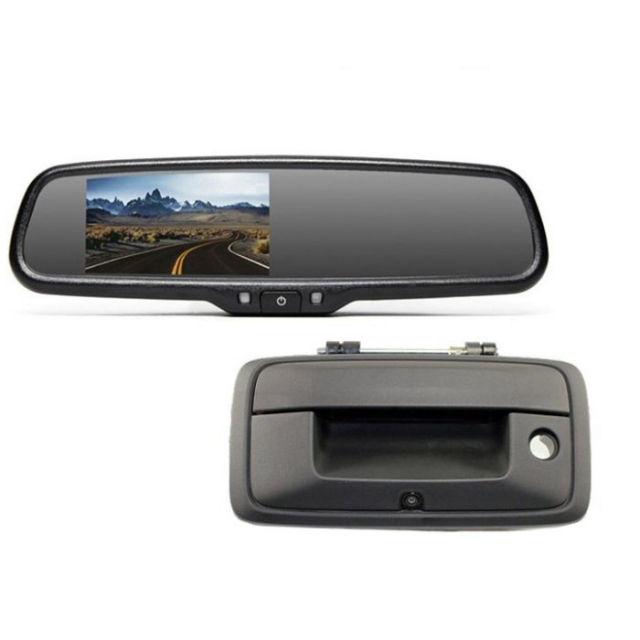 Rear View Safety, RVS-718517-08, Sierra 3500 2015-2017 Mirror Monitor System with Compass and Temperature, Sierra Tailgate Camera, 33' Cable