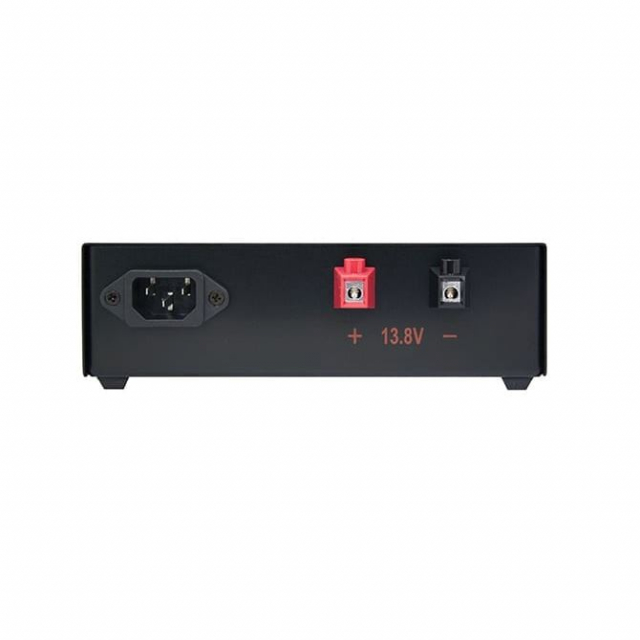 This high-efficiency AC-DC power supply provides a highly regulated output DC voltage of 13.8 Volts at 23 Amps with an AC input of 230 Volts, 50 Hz. These advanced switch-mode DC power supplies were designed specifically for use with land mobile radio. The power supplies produce clean reliable power and are highly filtered to suppress RFI. The unit comes with a detachable power supply cord with "SCHUKO" plug. Features include over-current, short-circuit, over-voltage and over-temperature protection. The AC-DC power supply conforms to EN60950 safety standards and EN55022 class B, EN6100-3-2,3, and EN61000-4-2,3,4,5,6,8,11 EMI/EMC standards.