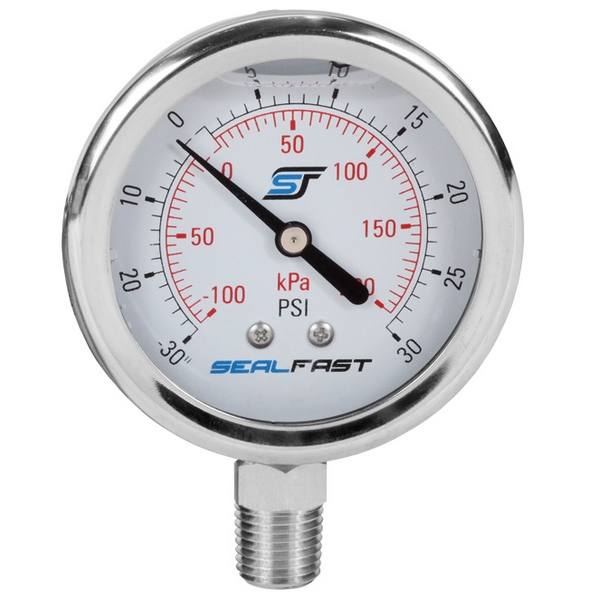 Seal Fast, G406001PSS, Gauge, 4" Face x 1/4" All Stainless Liquid Filled Case, Lower Mount