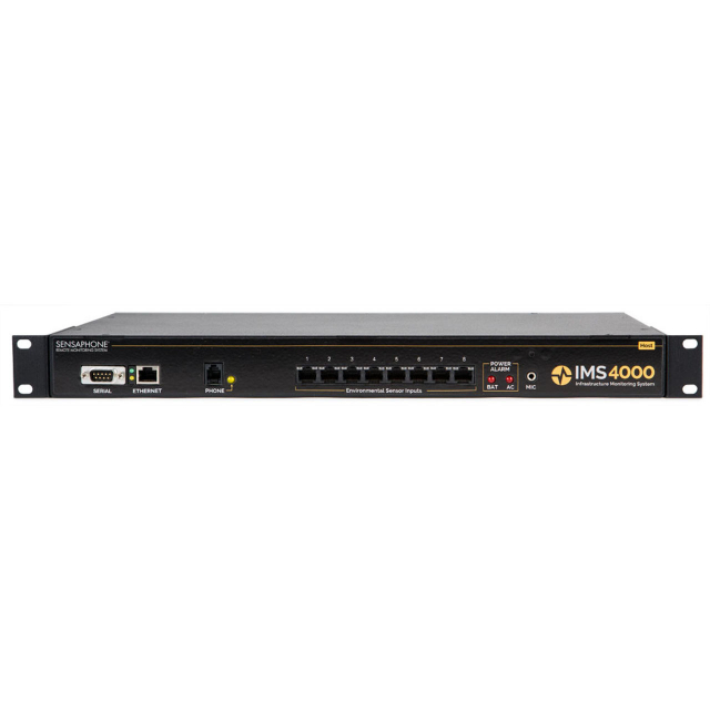 The Infrastructure Monitoring System (IMS-4000E) is the answer for web-based monitoring of critical environmental conditions across your entire infrastructure. Featuring a rack-mountable host, integrated voice dialer and reliable solid-state storage; this simple-to-install package is ideal for both small rooms and large data centers. Each sensor input features LEDs to indicate status while alarm LEDs show when power, IP, or battery alarms have been triggered.