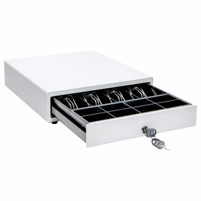 Star Micronics, 37967990, Choice Series White 14x16" 4Bill-5Coin Cash Drawer with Cable, Printer-Driven