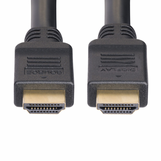 Route this Active High Speed HDMI 2.0 Cable through office plenum spaces for long distance transmission of 4K 60Hz video and high quality audio. The Active HDMI 2.0 cord is designed for long-distance reliability. Durable gold-plated connectors and 24/28AWG bare copper wire maintain optimal conductivity and low resistance, ensuring consistent performance across different environments. The integrated active chipset boosts the HDMI signal without requiring external power, facilitating 4K 60Hz video and full HDMI 2.0 capabilities. This enables the transmission of HDMI UHD video beyond passive cable lengths. This HDMI 2.0 Cable features a Communications Multipurpose Plenum (CMP)-rated cable jacket with low-smoke characteristics. It is ideal for use in the plenum spaces of buildings (e.g., dropped ceilings and in-wall installations). The durable outer jacket is rated to withstand over 1,000 bending cycles at -/+60 degrees. This protects the cable from damage when routing through tight spaces that include multiple bends. Note: This cable is unidirectional and must be installed in a specific direction. Refer to the embossed SOURCE and DISPLAY markings on the HDMI connectors to ensure that each end corresponds with the correct hardware. The terms HDMI, HDMI High-Definition Multimedia Interface, HDMI trade dress and the HDMI Logos are trademarks or registered trademarks of HDMI Licensing Administrator, Inc. The Active HDMI UHD Cable supports full HDMI 2.0 specifications: