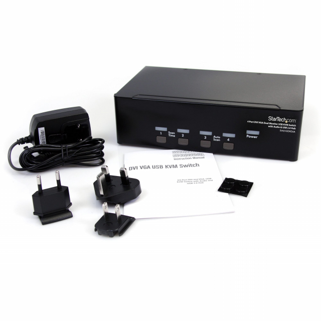 StarTech, SV431DDVDUA, 4 Port DVI VGA Dual Monitor KVM Switch USB with Audio & USB 2.0 Hub