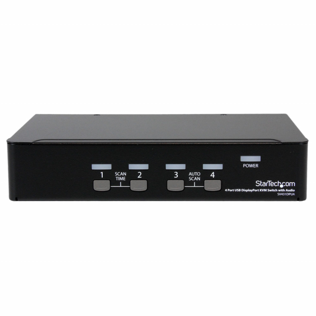 The SV431DPUA 4 Port USB DisplayPort KVM Switch with Audio combines next generation display standards with seamless KVM control of up to 4 connected PC or Mac computers. Featuring DisplayPort resolutions of 2560x1600 @60Hz, as well as offering both 7.1 HD digital audio (with supporting displays and sources) and separate 3.5mm stereo audio support. An integrated USB 2.0 hub allows you to share 2 additional peripherals among attached computers as if they were directly connected. Suitable for high quality static imaging applications such as health care (MRI, X-ray diagnostics, etc.), a maximum resolution of 3840x2400 is supported at reduced refresh rates. A simple yet comprehensive solution, the 4-port KVM features both front-panel push-button and hotkey switching, and offers a small form factor with rear connection ports, to minimize workspace disruptions.