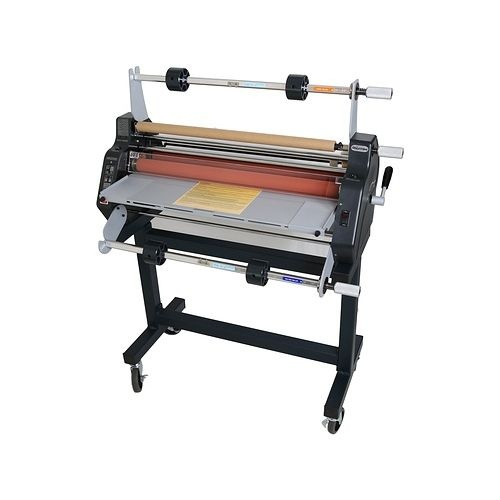 Professional-quality lamination is easily achieved with the Versalam 2700 HC from Tamerica. It will laminate all thicknesses of roll film to 10mil, as well as mount foam boards of all kinds up to 1/4" thick, up to 5 feet per minute. High quality silicone rollers offer consistent heat from edge-to-edge, and five cooling fans quickly cool the film, helping ensure a clean finish without curling. It also has a de-curling bar and back-pull bar to help prevent curling when using 1-side laminate. This heavy duty laminator is made from all-metal construction and UL approved. It offers adjustable speed and heat settings, which allow you to laminate thermal films and cold films. The bottom roller is independently controlled, so you can switch it off for single-side laminating as well. A rear film slitter lets you quickly trim between projects, without slowing down the production line. The 27" wide laminator allows for laminating even larger items, and an included guide plate helps with letter size document laminating as well.