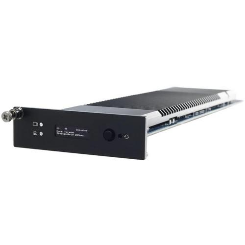Industry leading, low-latency blade decoder for Prism 1RU and 2RU rack mount systems. Supports 4K, 10-bit, 4:2:2 video decoding in a high density format.