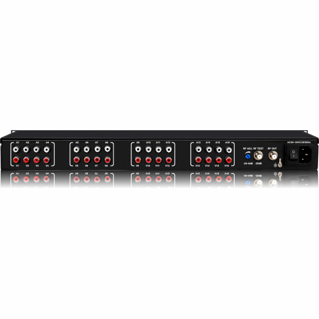 While NTSC is quickly becoming legacy equipment, there is still a need for head ends requiring Analog modulation. This unit simplifies the installation because of the high density capacity of 16 independent inputs.The Inputs are in CVBS RCA baseband video / audio inputs. Analog CVBS inputs can be connected from items like Security Cameras, DVD/VCR player, Set-Top Box, Old Video players, or older gaming systems like Playstation, Nintendo 64.The High Power RF Output allows for video distribution to many TV's on the same coax network without RF amplifiers.Common applications used are video security monitoring, Hotels, Motels, Education, Private anonymous channels, music channels, radio channels, coax network testing.It is SAW filtered and microprocessor controlled with an output capability of 860MHz. Setup and tuning is easy and simple via the front panel. The unit offers high performance, low cost comparable to digital modulators and compact design for system operators. Also features an RJ45 port for ethernet connection to the NMS management system which allows you to manage, remote access, and change settings.