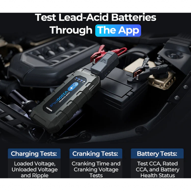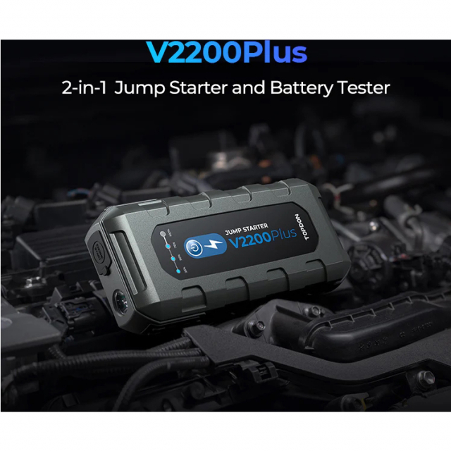 TOPDON, V2200PLUS, 2-in-1 2200 Peak Amp Jump Starter and Battery/System Tester