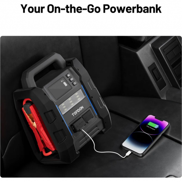 But that's not all - V4500 Plus jump starter is loaded with features aimed at enhancing your driving experience. With the capability to test your battery and monitor its status through app, you can stay proactive in preventing unexpected breakdowns. Moreover, with its super-fast charging capabilities, it can recharge your smartphone in just 25 minutes. Additionally, equipped with 15 ultra-bright LEDs and six red warning lights, jump starter delivers up to 500 lumens of light, ensuring you're never left in the dark.