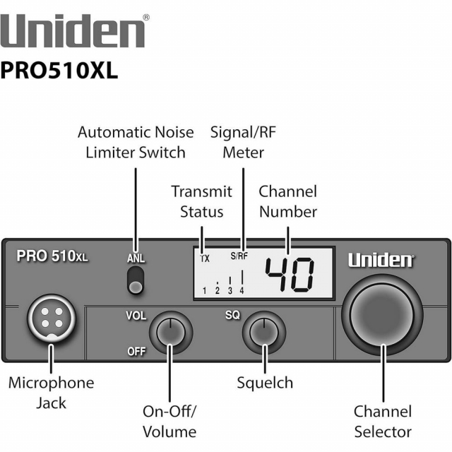 The Uniden PRO510XL heavy-duty CB radio offers high-performance full 40-channel operation in a rugged yet compact design that makes it an extremely popular choice for industrial, commercial, and off-road use.