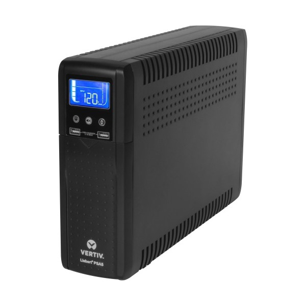 The Vertiv Liebert PSA5 line interactive tower uninterruptible power supply (UPS) is designed to protect and extend the life of your electronic devices in home and office. It offers cost-effective protection against power surges, brownouts, blackouts or drops in voltage. Automatic Voltage Regulation (AVR) extend battery life. The single phase UPS is easy to set up and ideal for PC workstations and monitors, small servers/routers, cable modems, home entertainment systems, point of sale (POS) terminals and other sensitive electronics
