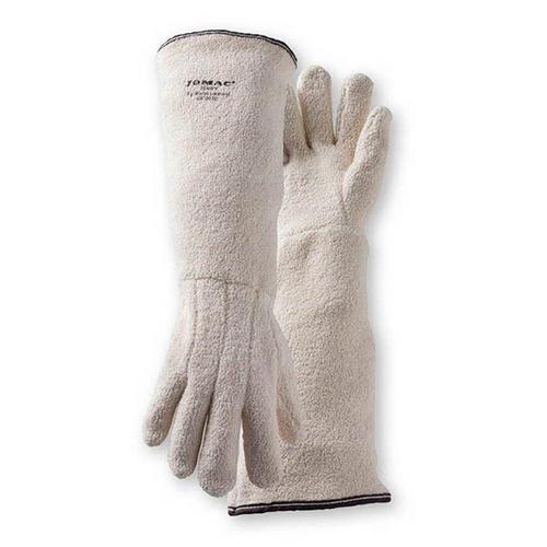 The Kelklave Autoclave glove provides heat resistance up to 250 deg F degrees. The glove is made from loop out terry cloth that is flexible and comfortable to the hand. An extra-long 11" gauntlet cuff adds better protection from burns on the arm. This glove is an ideal choice for autoclaves and metal handling.