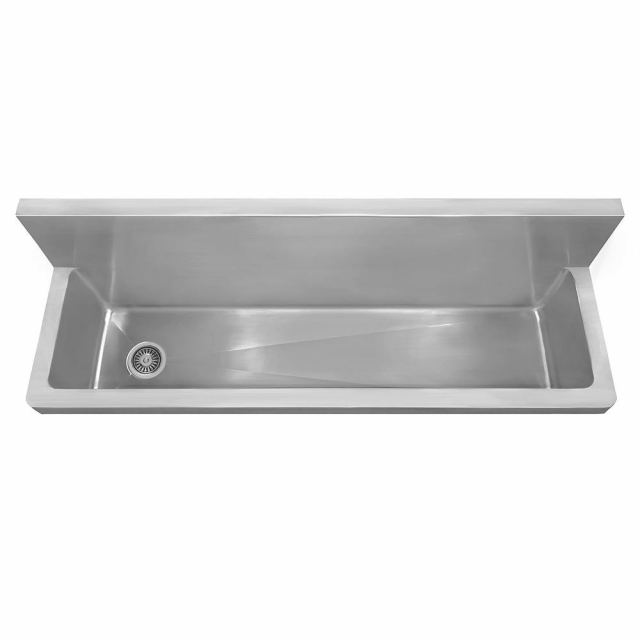 44" Noah's Collection brushed stainless steel single bowl wall mount commercial utility sink with 2-1/2" offset center drain opening. Great in garages, laundry rooms or commercial areas.